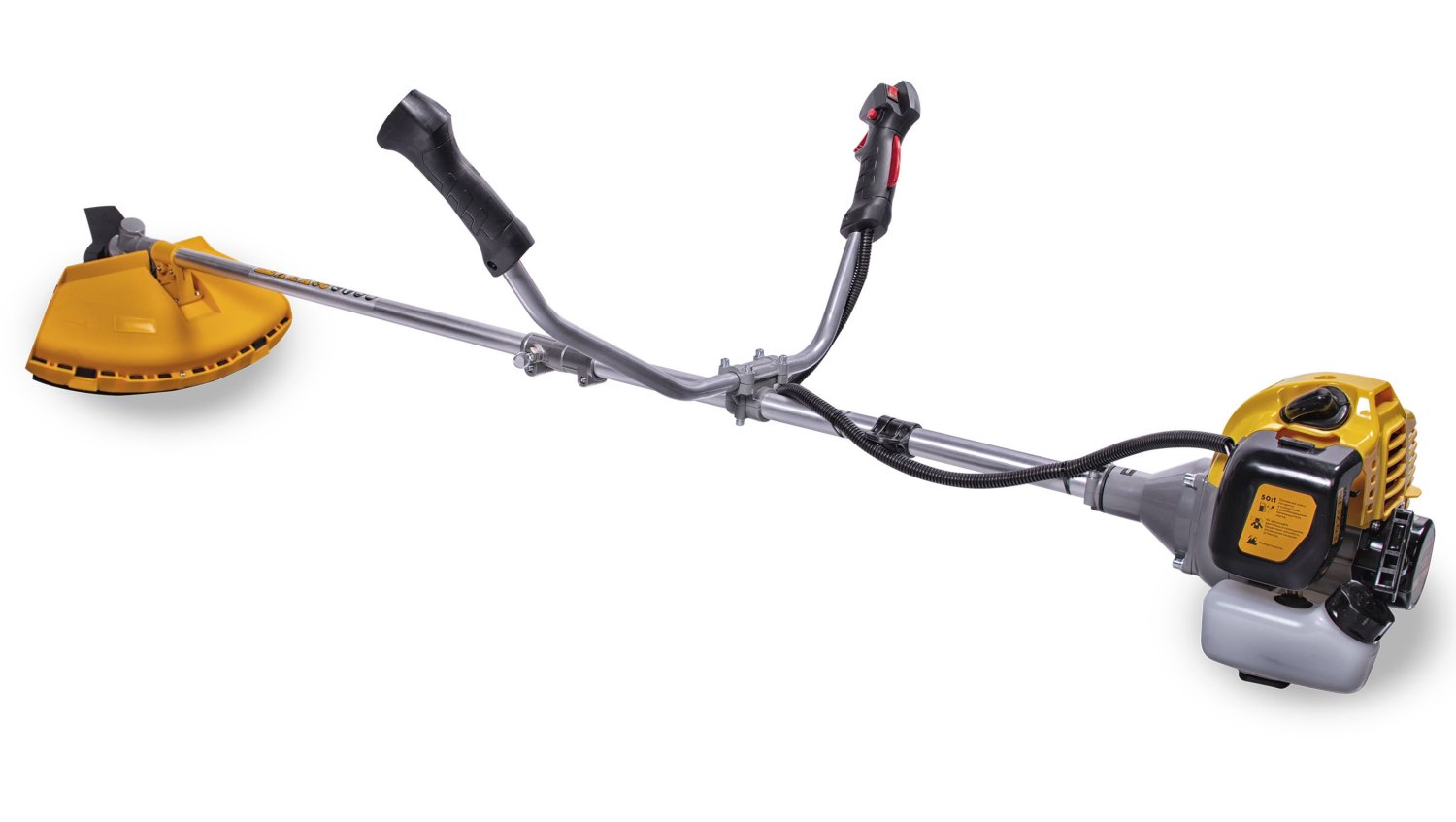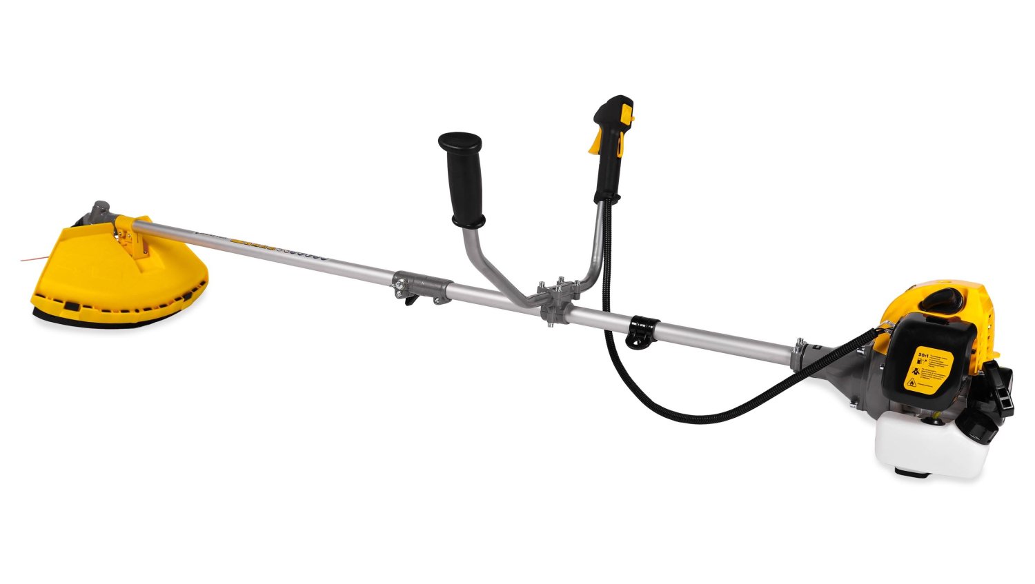 Для упрощения начала работы модель оснащена системой легкого старта. Используя для срезания леску, можно обработать полосу шириной до 415 мм. В тоже время ножом можно обработать лишь полосу в 255 мм. Штанга имеет прямое строение. При необходимости транспортировки и хранения ее можно разобрать. Рукоятка имеет У-образную форму. Топливный бак вмещает до 0,95 л. топлива. Этого вполне достаточно для продолжительной работы без необходимости дозаправки. Работает аппарат на бензине. Конструкцией не предусматривается травосборник, но это делает аппарат более мобильным и компактным. Высоту скашивания настроить нельзя. Эта функция полностью ложится на оператора, совершающего процесс обработки. Приемлемый уровень шума в 96 дБ дает возможность использовать прибор в жилой зоне. При этом для сохранения здоровья органа слуха производитель рекомендует использовать наушники и другие средства защиты.