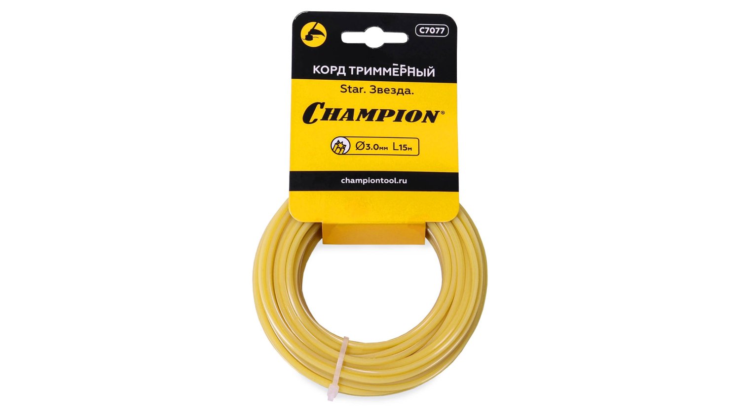 Корд триммерный Champion Star 3.0 мм х 15 м (звезда) - это корд желтого цвета с сечением звездочка. За счет острых режущих граней повышается эффективность резки травы и снижается тормозящее действие на двигатель триммера. Благодаря такому сечению корда снижается уровень шума прим стрижке травы. Оптимален для регулярного скашивания травы. Имеет широкий период эксплуатации даже в условиях интенсивных нагрузок. Купив корд для триммеров Champion Star, вы обеспечите свой триммер высококачественным режущим элементом на длительное время
