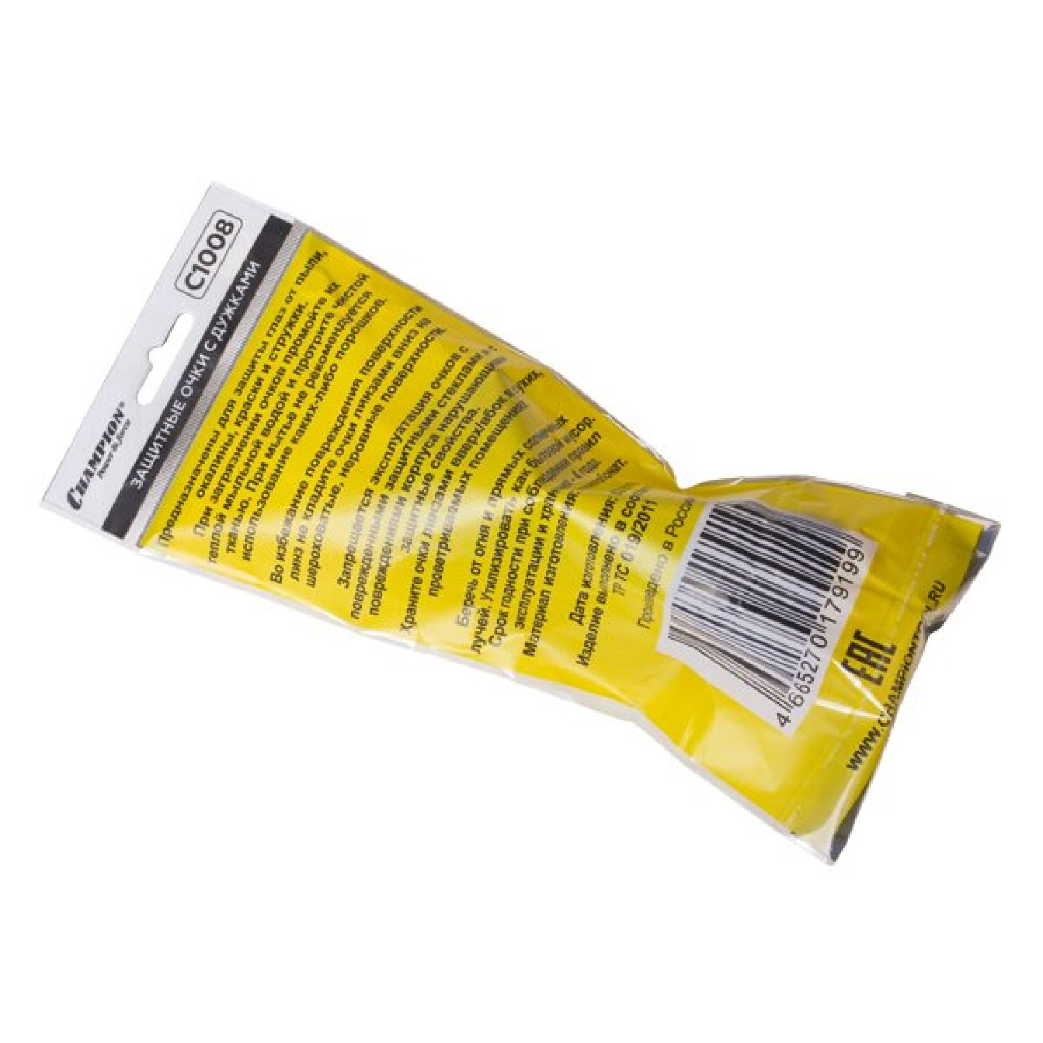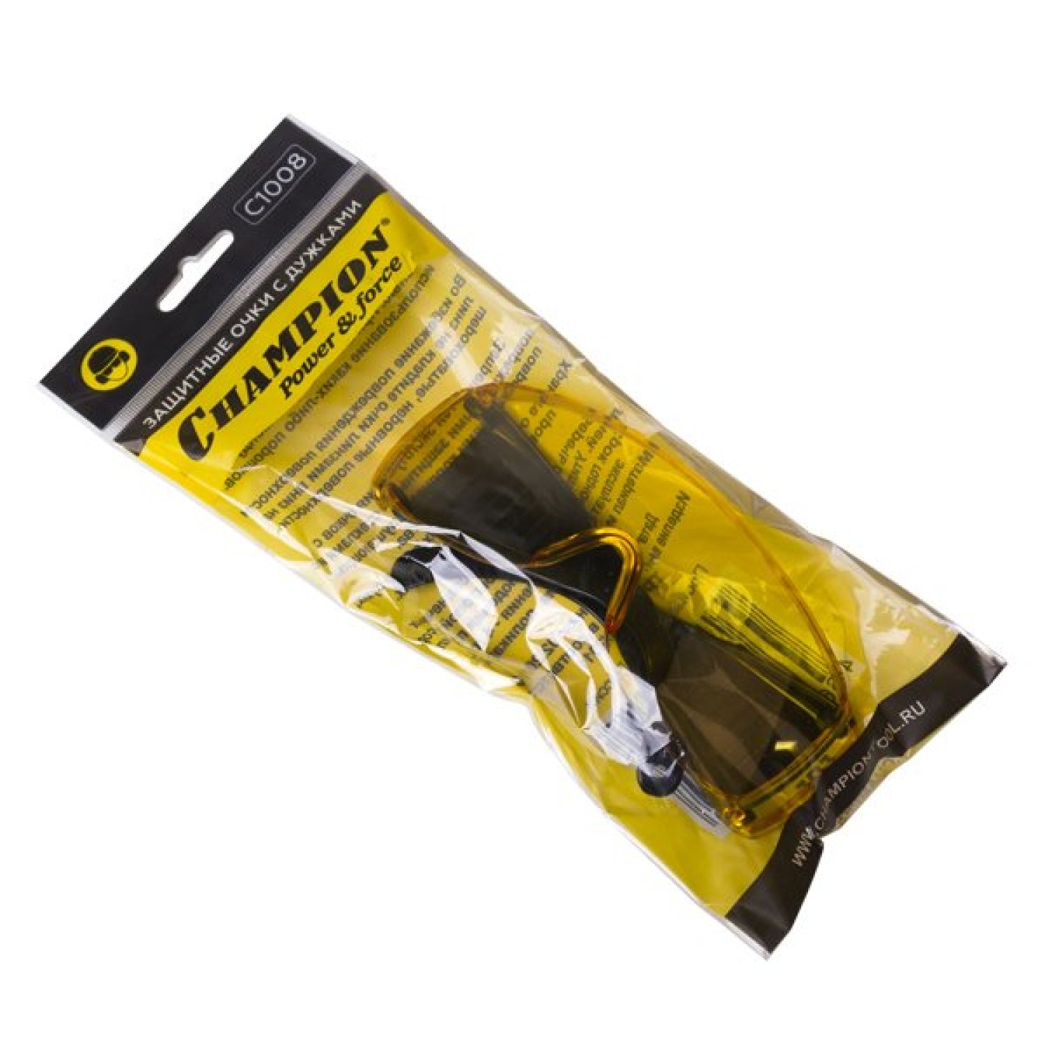 Очки защитные Champion профессиональные затемненные защитные очки Champion с усиливающей рамкой сверху. цвет: желтые боковая защита отверстия в дужках для шнурка для максимально комфртного использования защита от пыли, опилок и мелких частиц материала