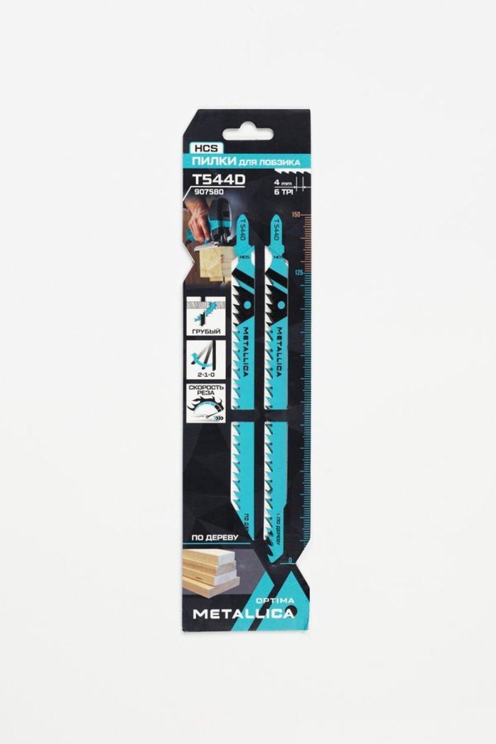 Пилки для лобзика METALLICA Optima T544D, 150/125мм шаг 4мм, HCS грубый рез, по дереву 2шт