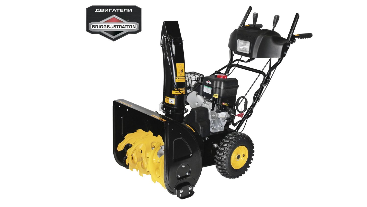 Данная снегоуборочная машина включает в себя двигатель на бензине четырехтактного типа с вертикальным способом расположения. Благодаря подобной оснастке агрегат эффективен для работы в периоды мороза и при проблемной погоде. Край шнека, оснащенный зубцами, дополнительно наделяет снегоуборщик функцией разбивки и дробления льда. А колесный привод самоходного типа значительно упрощает трудовую деятельность оператора.