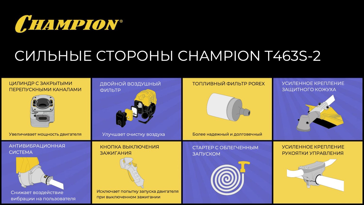 Особенности CHAMPION Т463S-2 включают в себя: